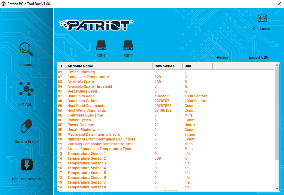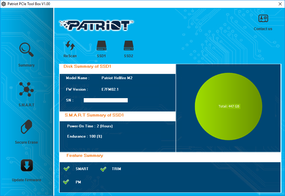 С сайта Patriot Memory можно загрузить специальное приложение SSD Toolbox, весьма ограниченное в своих возможностях:
