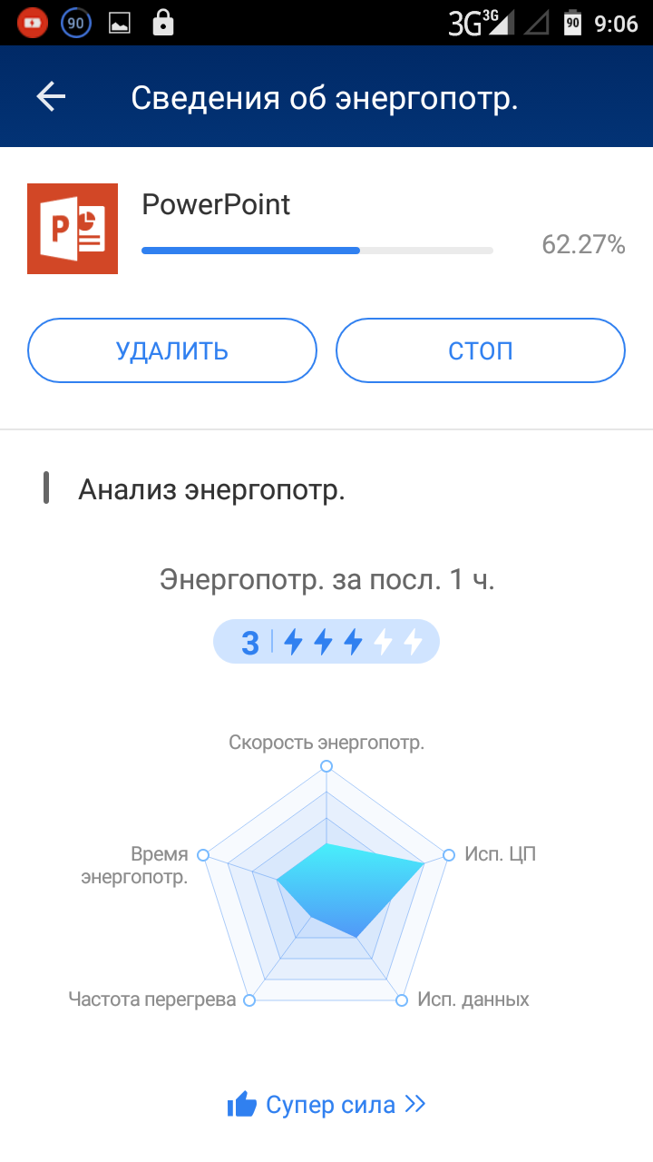 Нагрузка на систему традиционно для мобильных решений Microsoft высокая – 300 Мбайт ОЗУ при 3% на процессоре. Аккумулятор в среднем проседает на 60%, если полностью с нуля создавать презентацию. Среднее энергопотребление на уровне 85 мВт, что говорит о том, что просмотр и небольшие корректировки отнимут в два раз меньше заряда батареи.