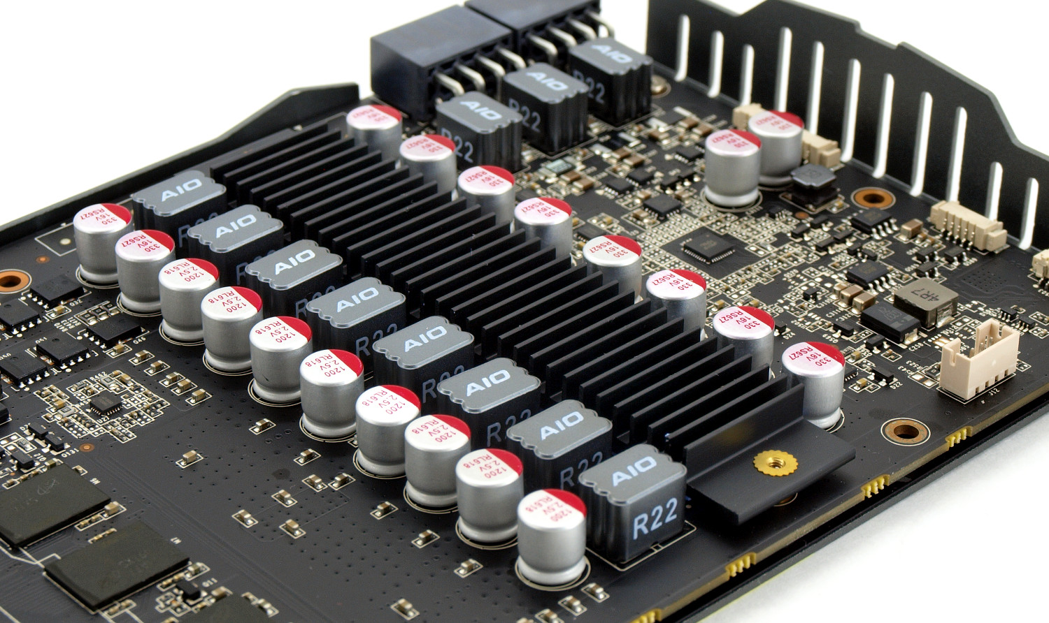 Подсистема питания построена по десятифазной схеме: восемь фаз отведены под графический процессор и две на видеопамять.