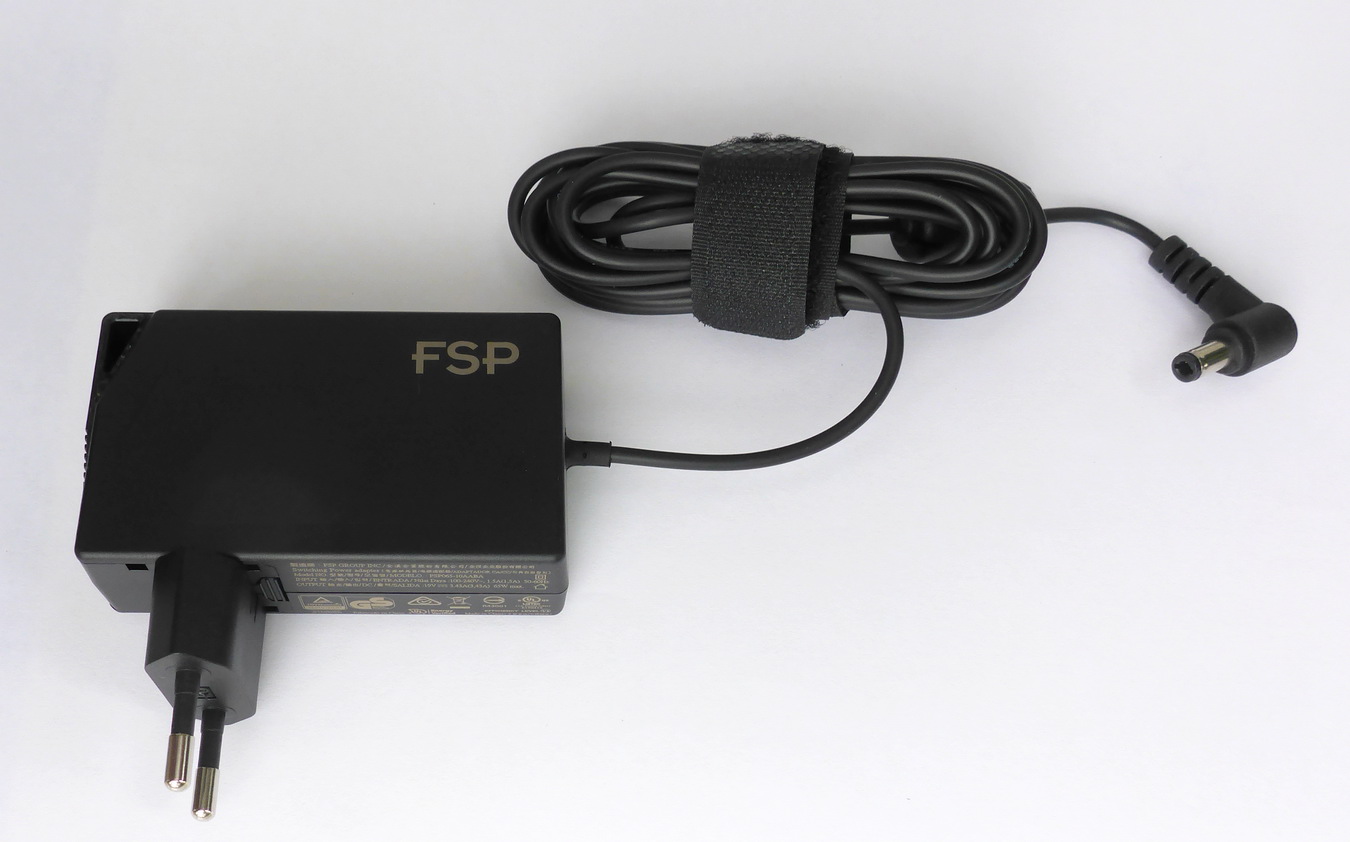 Адаптер (БП) отвечает за высокую выходную мощность (65 Вт, 19 В x 3.43 A), которая значительно превышает потребление мини-ПК. Это обеспечит нормальное функционирование устройства даже при высоких импульсных нагрузках. Обращаю внимание, что это именно блок питания, а не зарядное устройство, ведь заряжать там нечего (аккумулятор отсутствует).