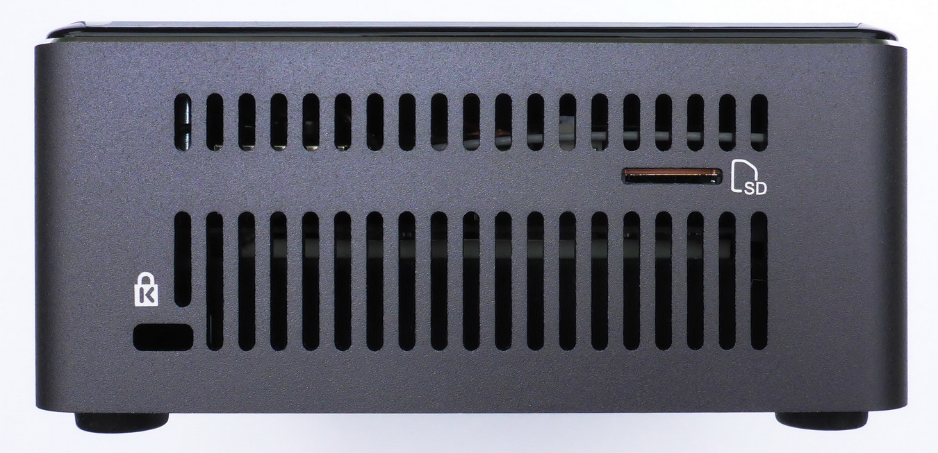 На левой стороне много прорезей для вентиляции, а также слот для карты памяти microSD и отверстие для замка «Кенсингтон». Будем помнить о том, что малогабаритные устройства относятся к классу «часто воруемых», и будет лучше подстраховаться.