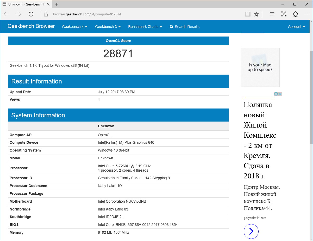 Теперь продемонстрируем результаты теста Geekbench: