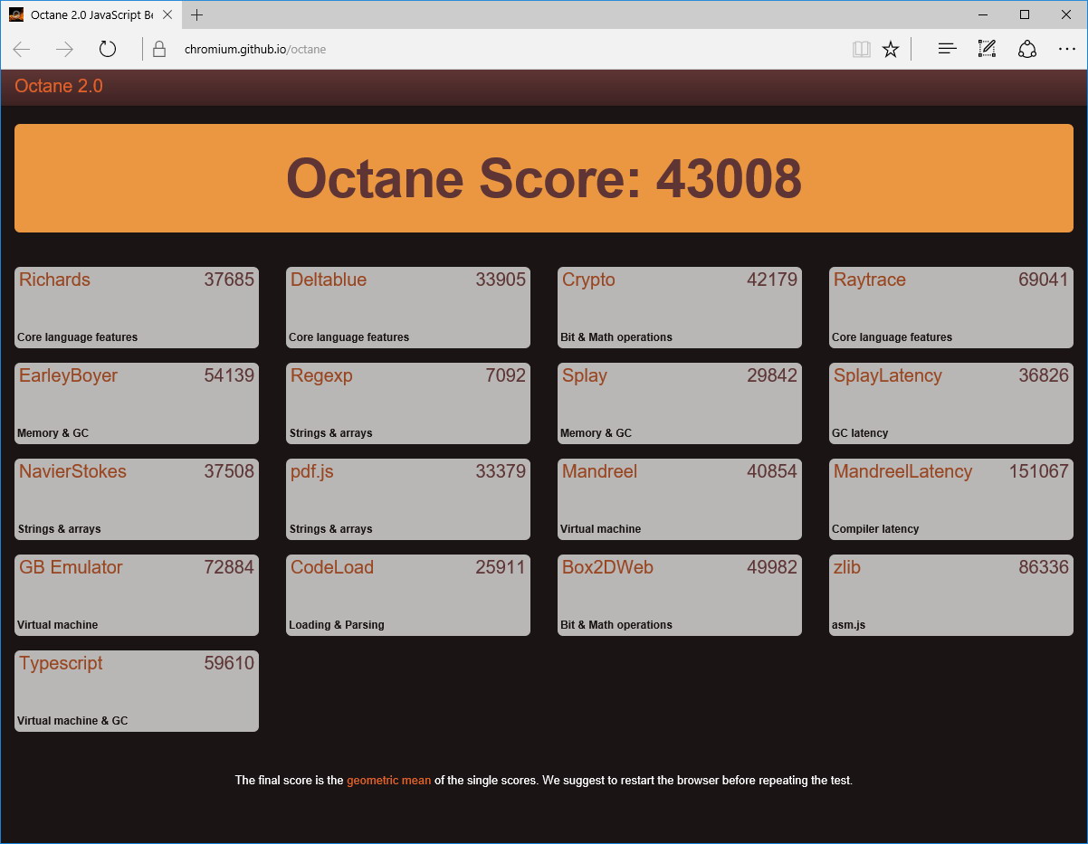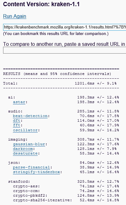 Затем пара браузерных тестов – Octane и Kraken: