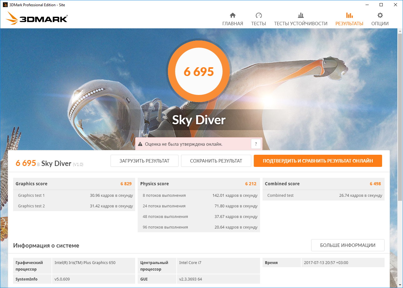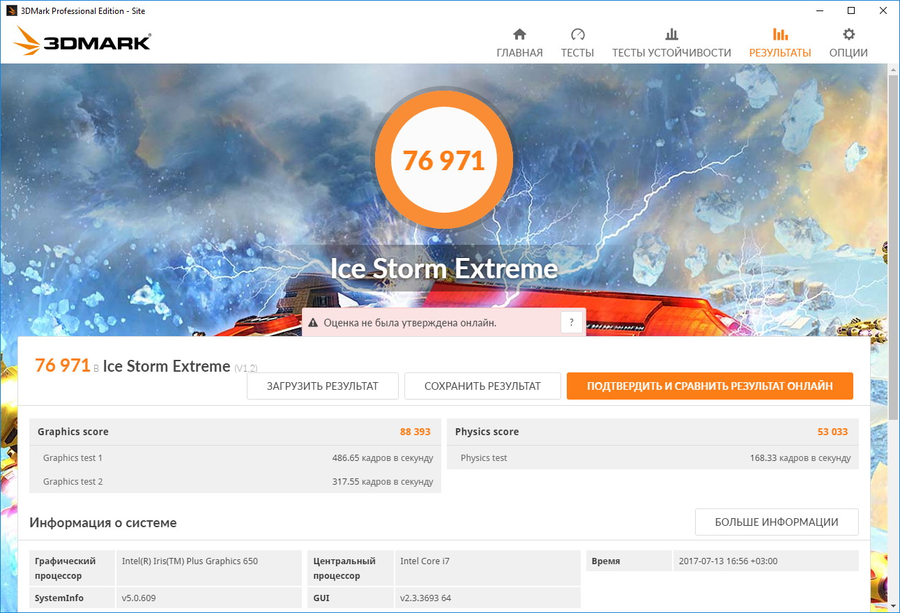 На очереди – тест 3DMark в трех вариантах (Ice Storm Extreme, Sky Diver, Fire Strike):