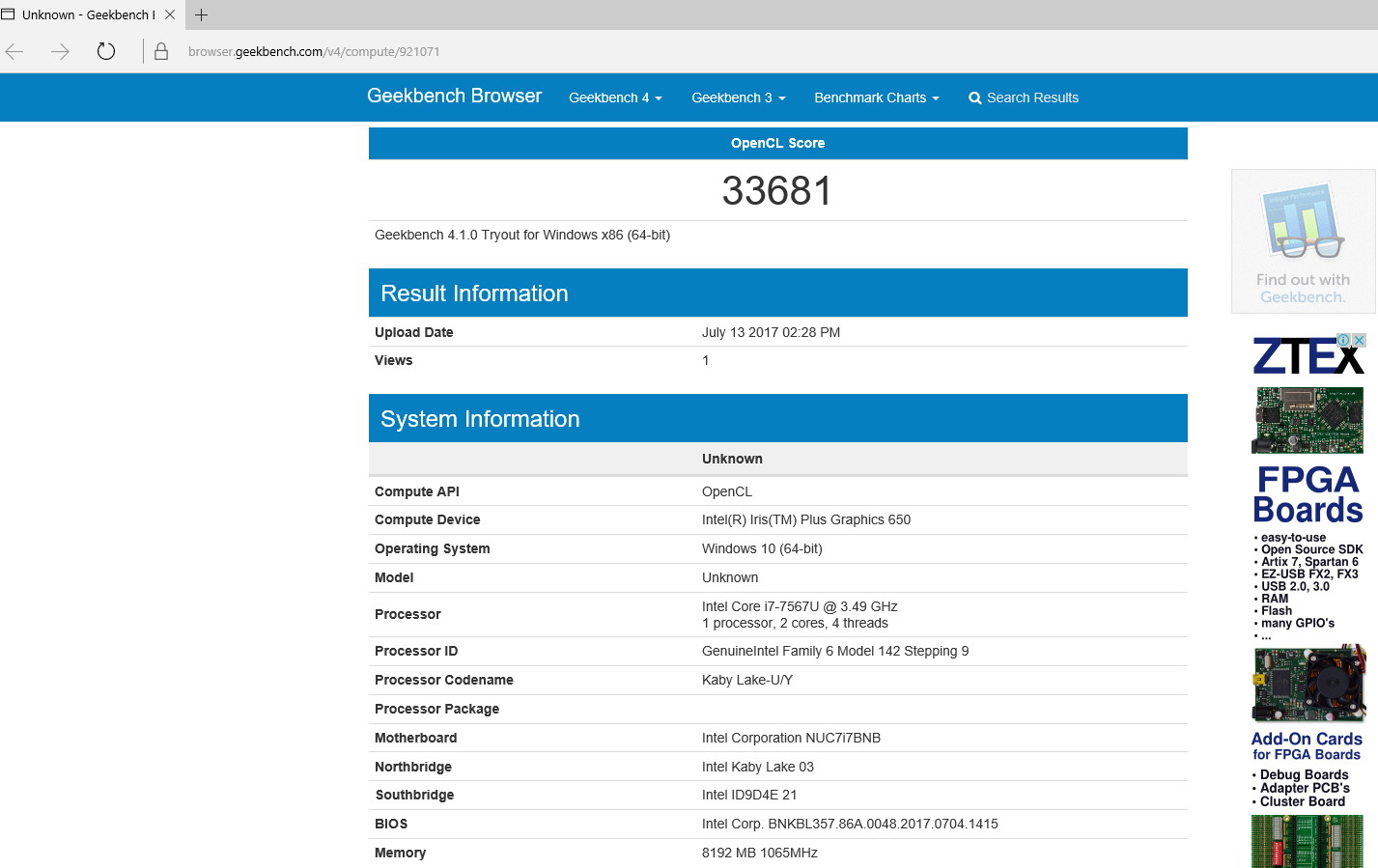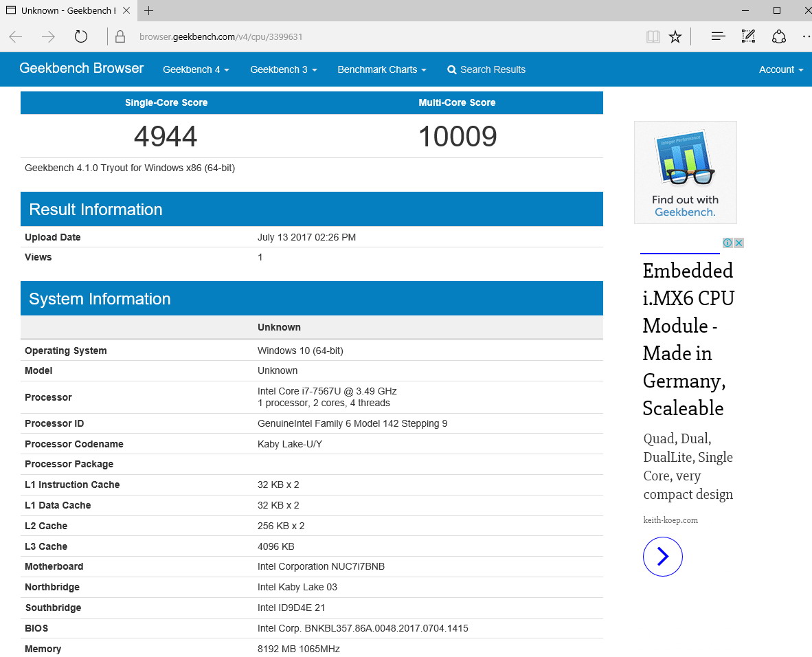 Теперь переходим к тестированию старшей модели – NUC7i7BNH. Порядок тестирования будет тем же самым, а начнем с характеристик примененного процессора.