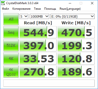 Таким образом, мы можем узнать, насколько хорошо микропрограмма накопителя справляется с задачей поддержания уровня быстродействия на небольшом объеме одномоментно записываемых и прочитываемых данных – для эксплуатации в бытовых условиях этого достаточно.