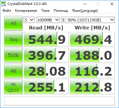 ScoreДанный бенчмарк позволяет увидеть скорость операций с файлами внутри одного носителя. Использовалась версия 1.7.4739.38088. Данный тест может проявлять зависимость от количества оперативной памяти в системе.