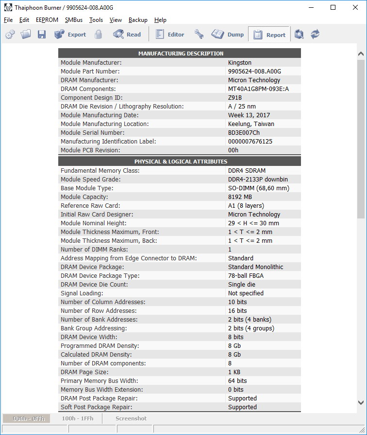 Содержимое SPD, как всегда, можем «подсмотреть» с помощью утилиты Thaiphoon Burner: