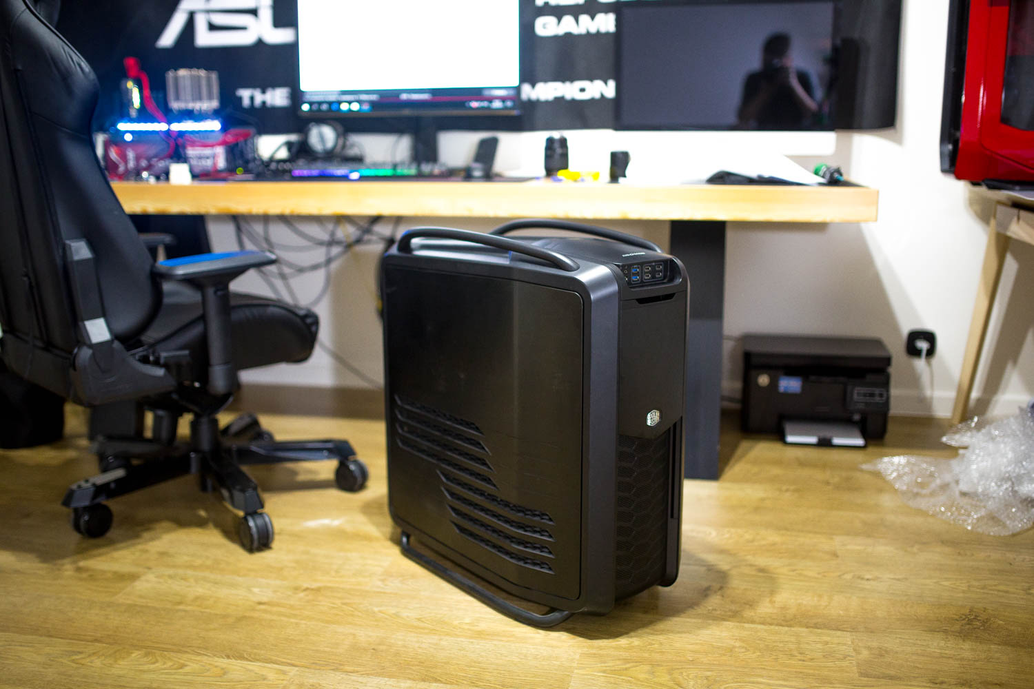 И вот почти собранный Cooler Master Cosmos II стоит на том же месте, с которого начиналась его разборка.