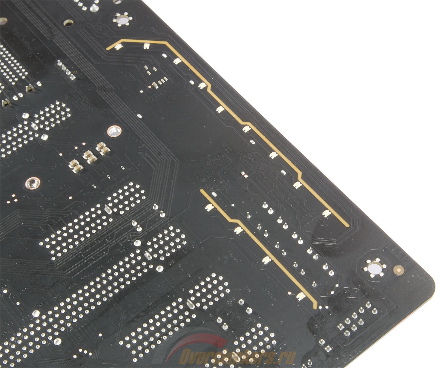 Вариантов в случае совсем уж серьезного конфликта видится два. Первым может быть перестановка видеокарты в третий по счету (сверху вниз) PEG, благо на него приходит ровно столько же линий PCIe 3.0, сколько и на первый PEG (подробней мы рассмотрим конфигурирование линий PCIe ниже, в соответствующем разделе). Второй – поворот радиатора системы охлаждения процессора на 90 градусов, если, конечно, ее крепление это допускает. Кстати говоря, этот момент был опробован при практическом тестировании, о чем я расскажу в соответствующем разделе.