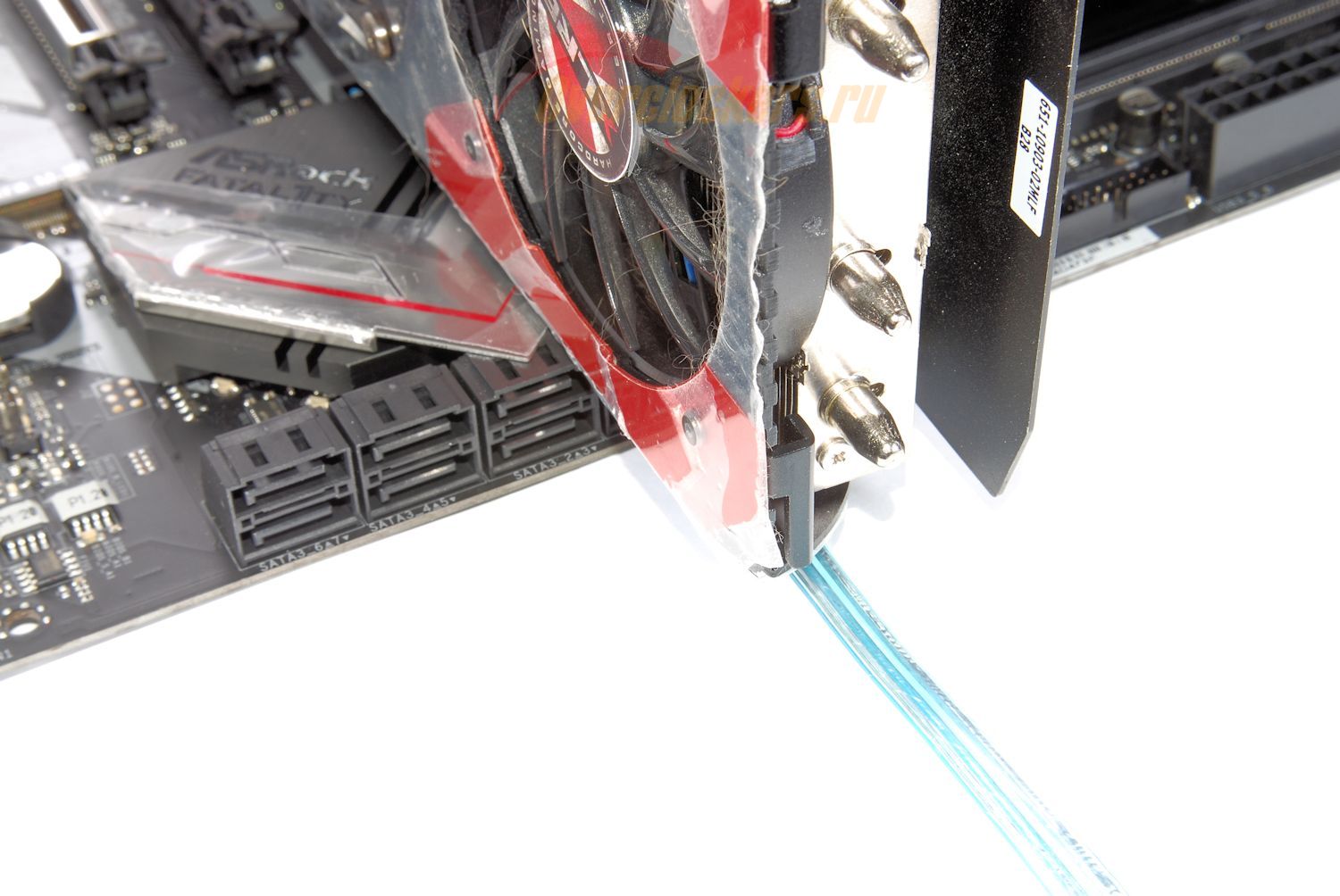 Все они ориентированы параллельно плоскости платы (так называемые «лежачие» разъемы) и обладателей массивных длинномерных видеокарт традиционно ожидают ограничения доступа к ним. Например, при установке длинномерной массивной видеокарты в верхний PEG окажется затруднен доступ к двум верхним разъемам SATA: