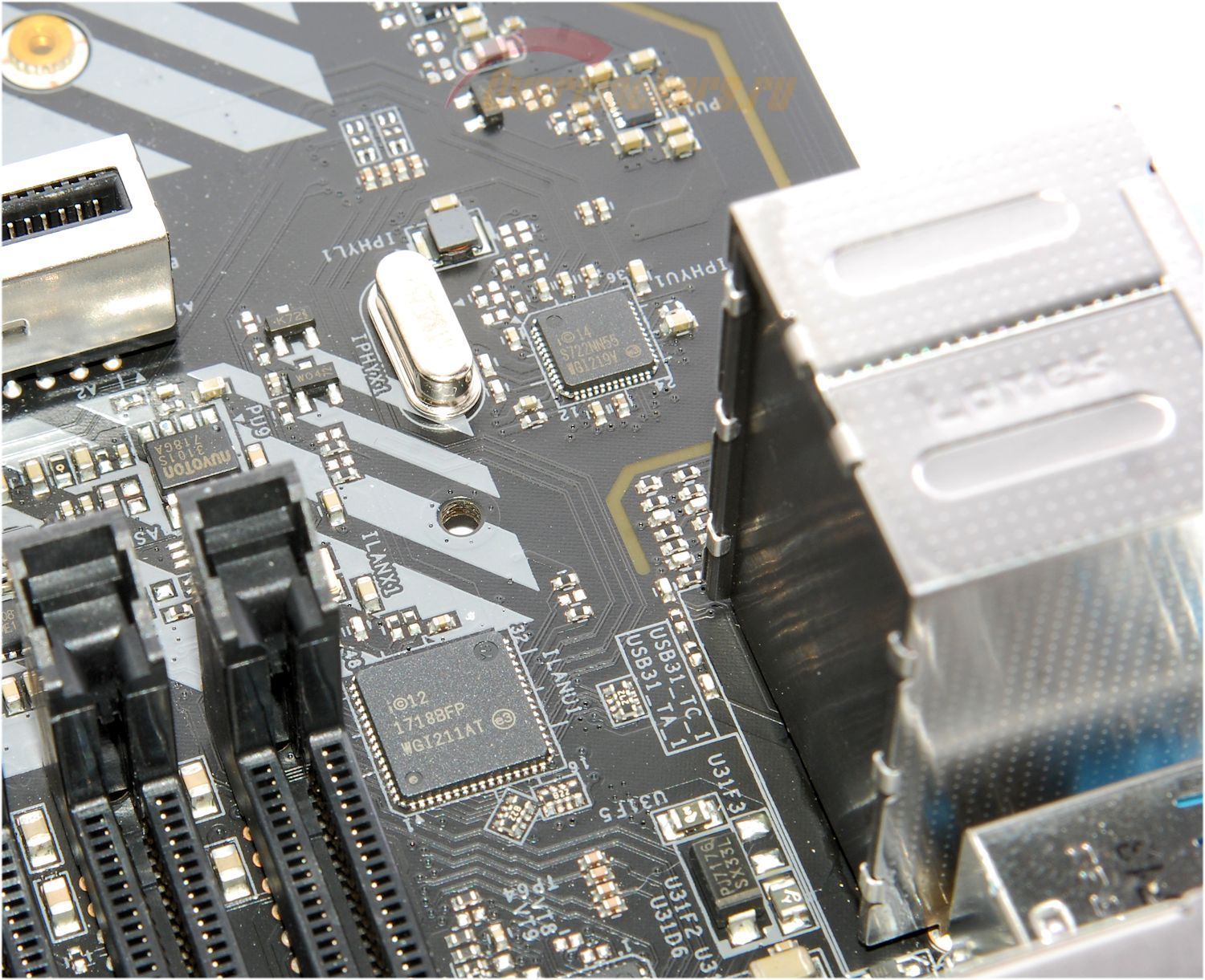 Сетевой стек на плате реализован сразу двумя контроллерами, в роли которых используются гигабитные Intel i219V и Intel i211AT.