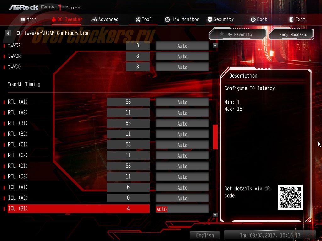 | Напряжение оперативной памяти | Auto, от 1.100 до 2.000 В с шагом 0.005 В, слоты разбиты на две группы по 4 слота и для каждой напряжение задается отдельно |
