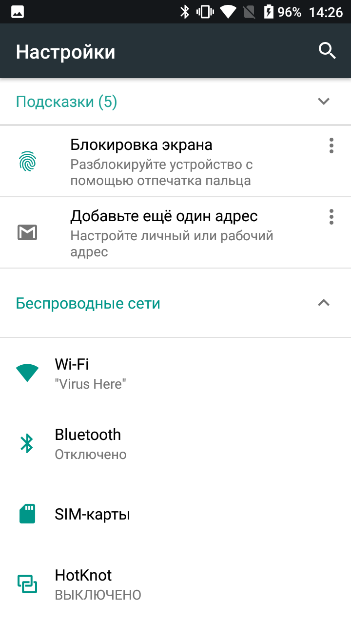 Список беспроводных интерфейсов привычен и стандартен, каких-либо дополнительных коммуникационных возможностей не предусмотрено.