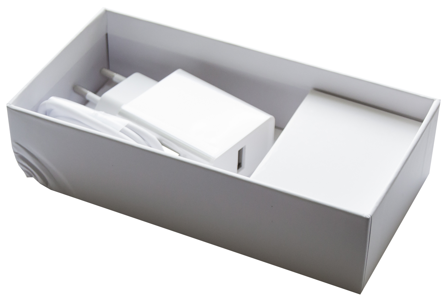 Смартфон поставляется внутри белоснежной картонной коробки. Дизайн выполнен в эстетике минимализма с небольшим количеством элементов оформления.