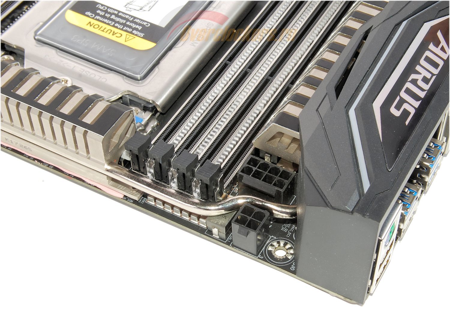 Верхний радиатор контактирует с элементами цепи питания, формирующими напряжение CPU VCore, а боковой – CPU NB SoC и одной из двух подсистем питания оперативной памяти.