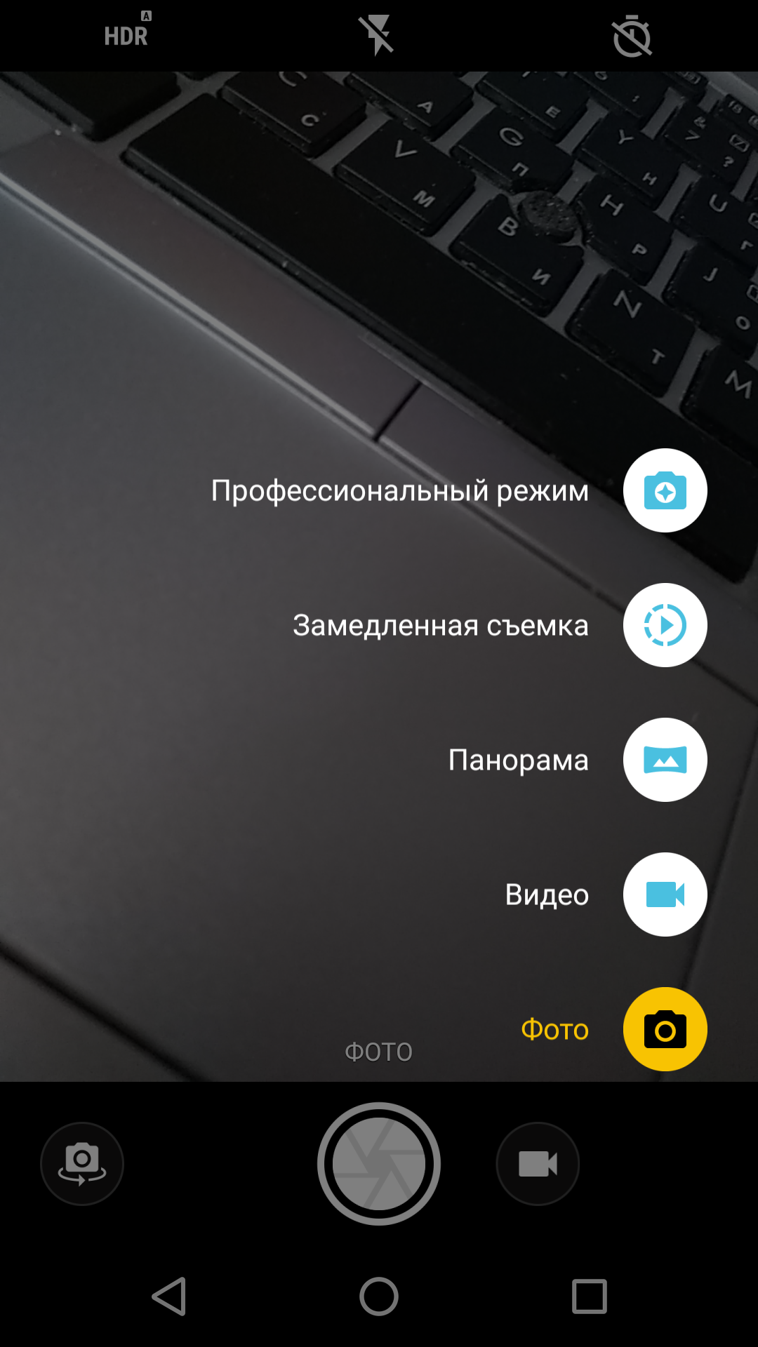 Среди базовых режимов, присутствует также Профессиональный режим, позволяющий вручную управлять настройками съемки.