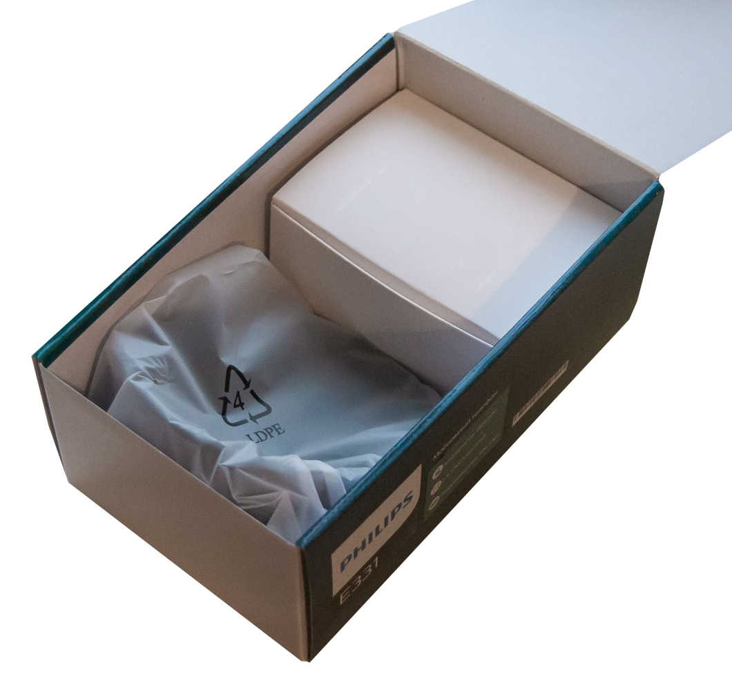 Дизайн упаковки с первого взгляда навевает воспоминания об эпохе кнопочных телефонов, когда производители старались разместить на коробке максимум информации, чтобы заинтересовать покупателя в условиях розничной продажи.
