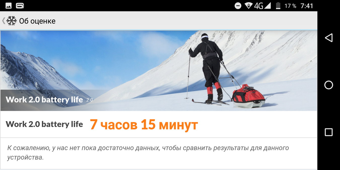 В тесте со смешанной нагрузкой PCMark смартфон продержался 7 часов 15 минут: