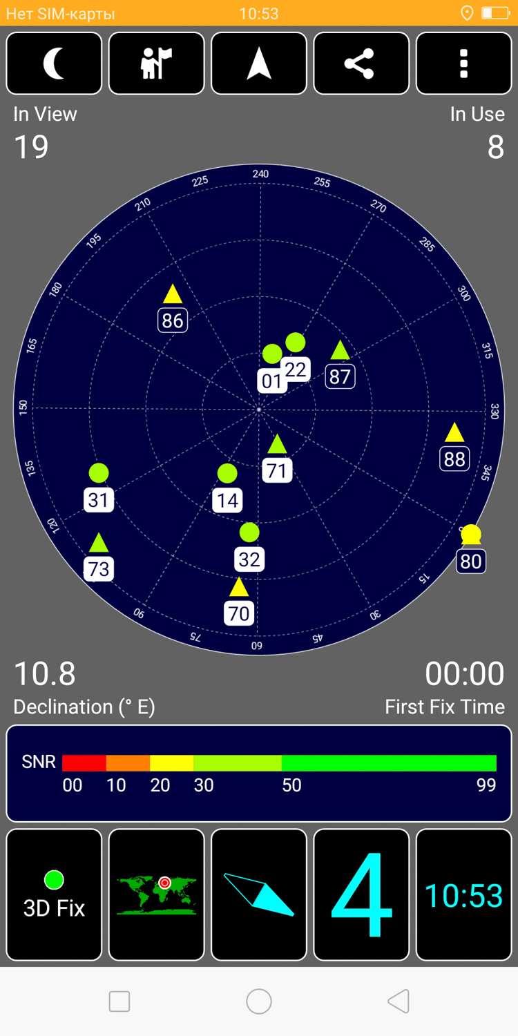 Позиционирование не самое точное, смартфон смог «зацепиться» за 6-9 спутников из 20 обнаруженных без помощи интернета. Результат типичный для среднего сегмента платформы MediaTek.