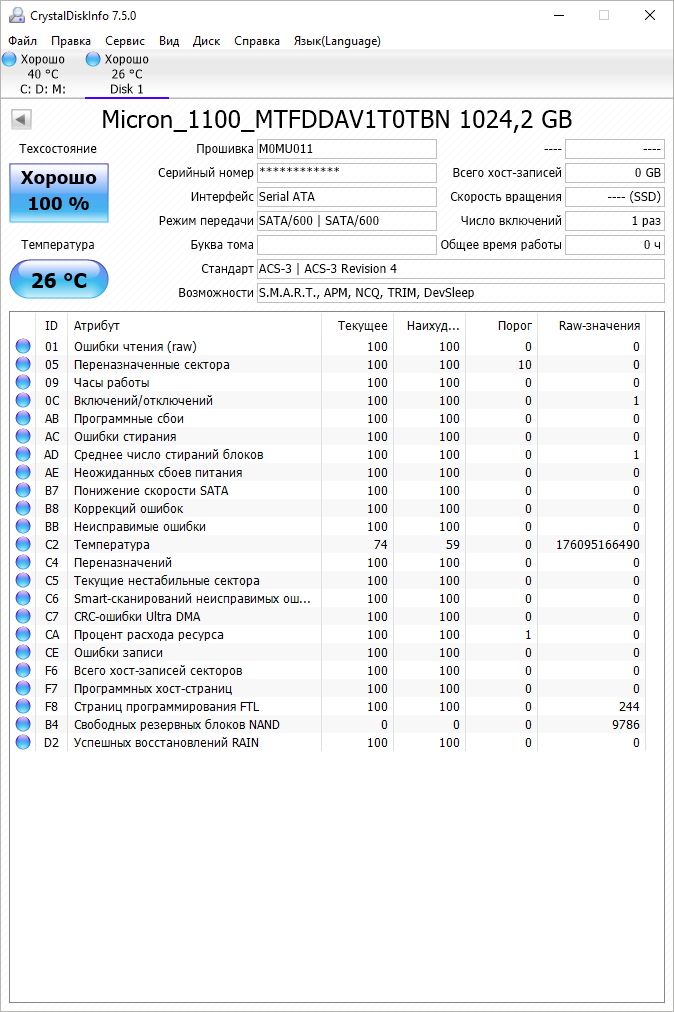 В каких-либо комментариях скриншот не нуждается – все наглядно показано CDI с переводом на русский язык.