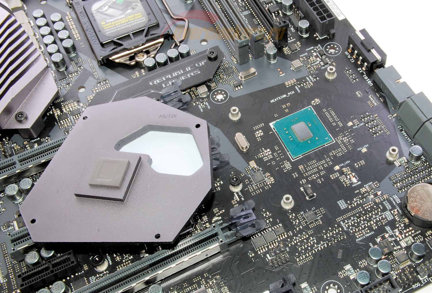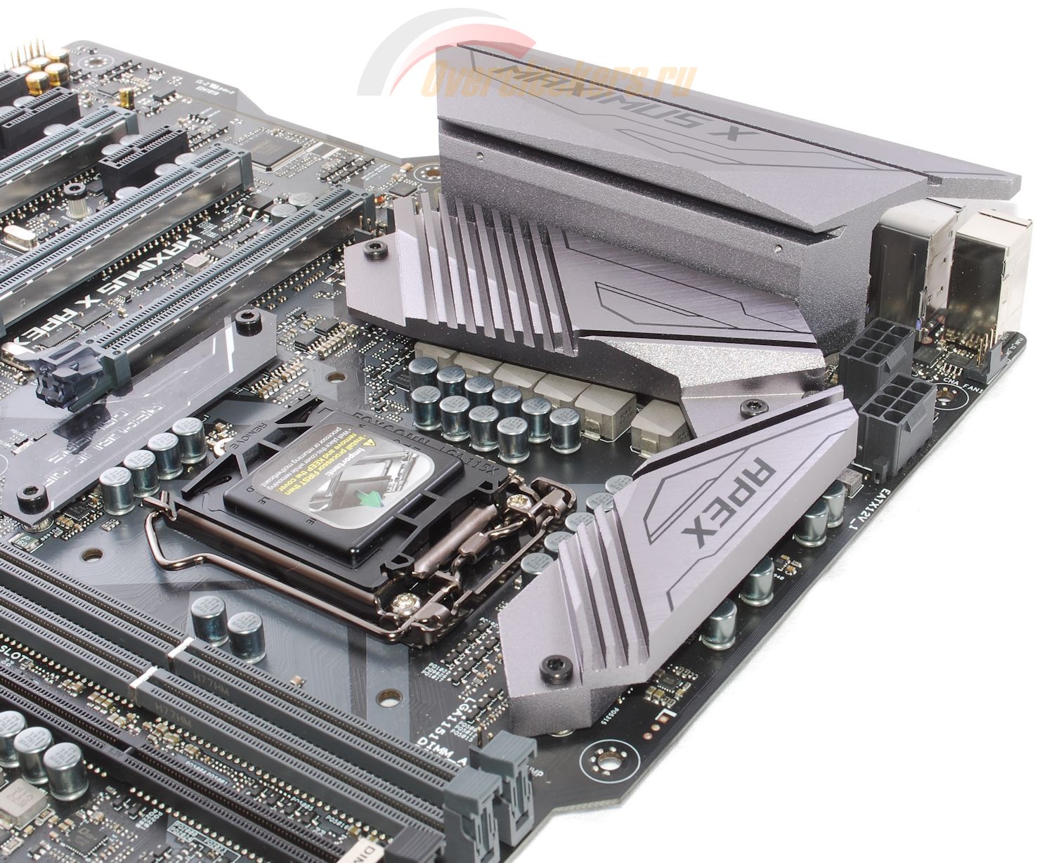 ASUS ROG Maximus X Apex оснащена охлаждением набора системной логики, цепей питания процессора и сетевого контроллера Aquantia.