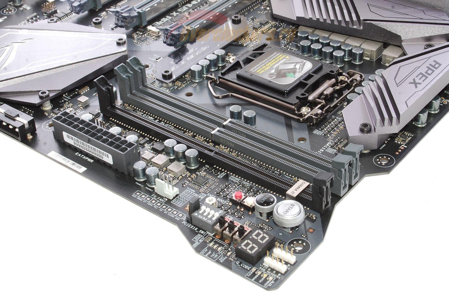 Заявляется твердая поддержка частот 2133/2400/2666 МГц – согласно спецификациям Intel. В режиме разгона ASUS обещает достижение 4500 МГц, по факту в BIOS присутствуют множители памяти до 8533 МГц включительно. И тут есть свои нюансы: тут не только нужна соответствующая память, но и не всякий процессор Coffee Lake способен даже на 4133 МГц, причем встречаются экземпляры с нерабочими множителями памяти вроде 4266 (хотя на этот случай на ASUS ROG Maximus X Apex реализована поддержка разгона по базовой частоте).
