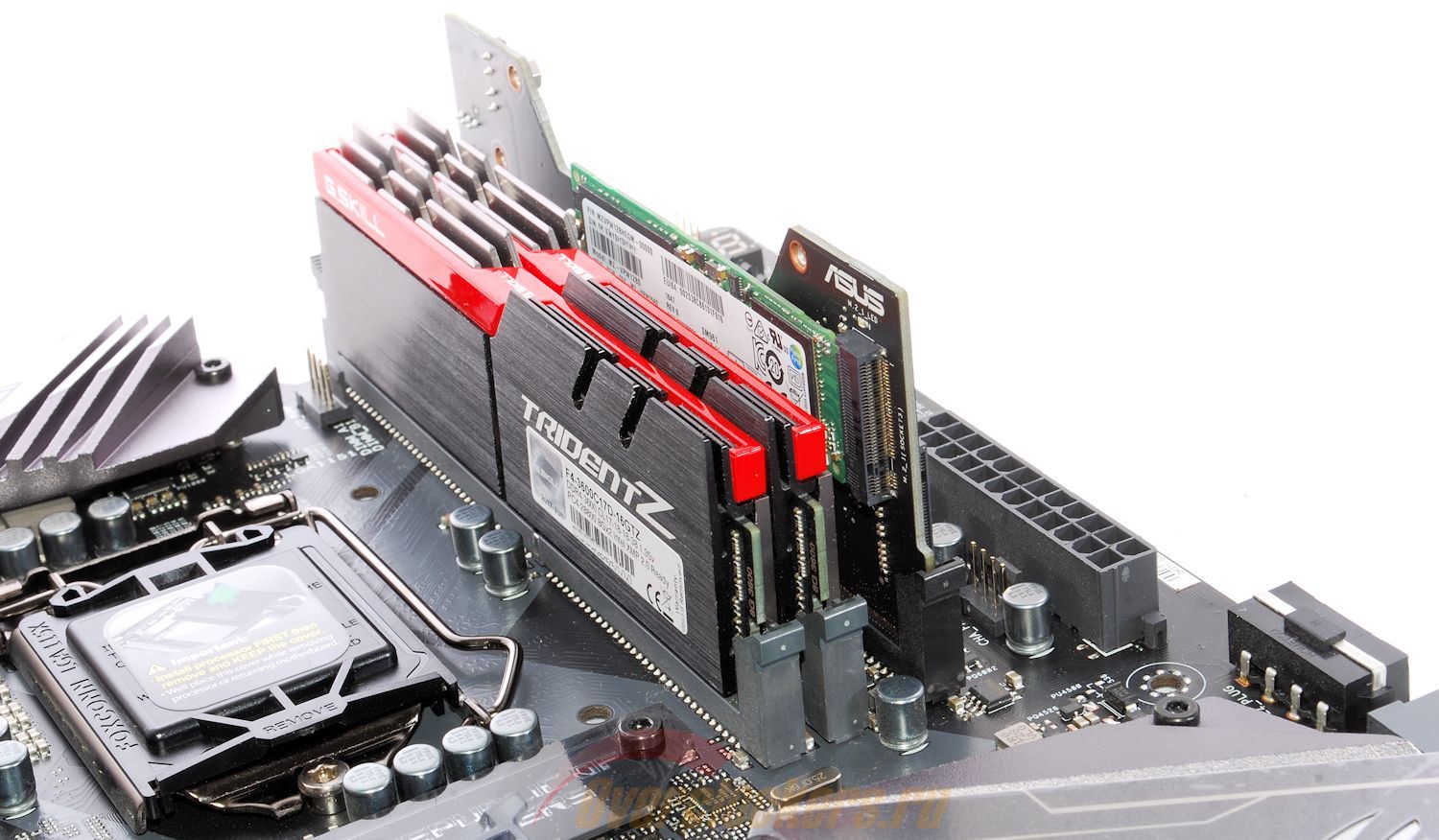 Инженерам ASUS нужно отдать должное: даже при дефиците места они не стали экономить миллиметры и при использовании модулей памяти с массивными радиаторами не возникает конфликтов (мне уже доводилось сталкиваться с платами, где имеющиеся у меня модули G.Skill просто не влезали).