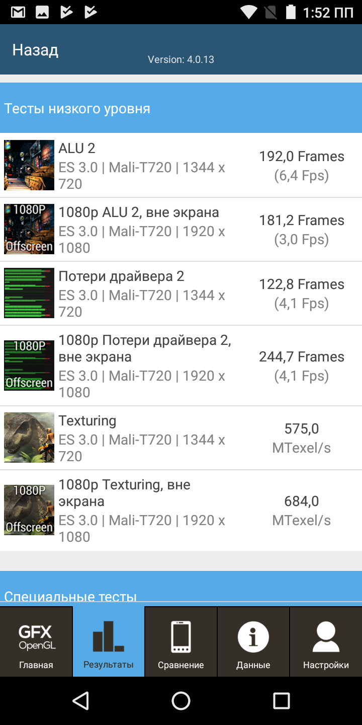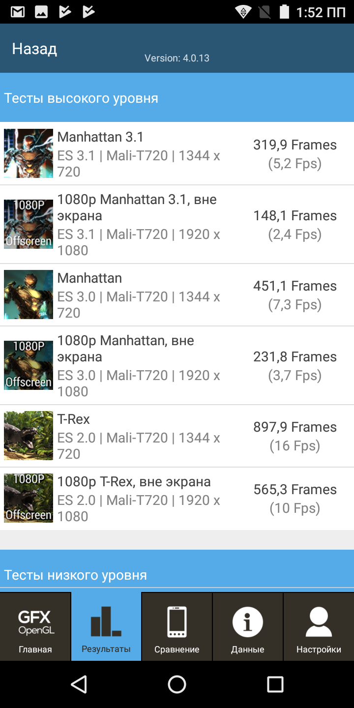 Результаты не впечатляют, да и не должны, ведь речь идет о бюджетном смартфоне. В этом случае высокий уровень производительности не является основной задачей. Зато благодаря большому объему оперативной памяти аппарат способен обеспечить неплохую многозадачность и адекватные возможности в играх. Правда, в современных трехмерных играх настройки графики придется снижать.