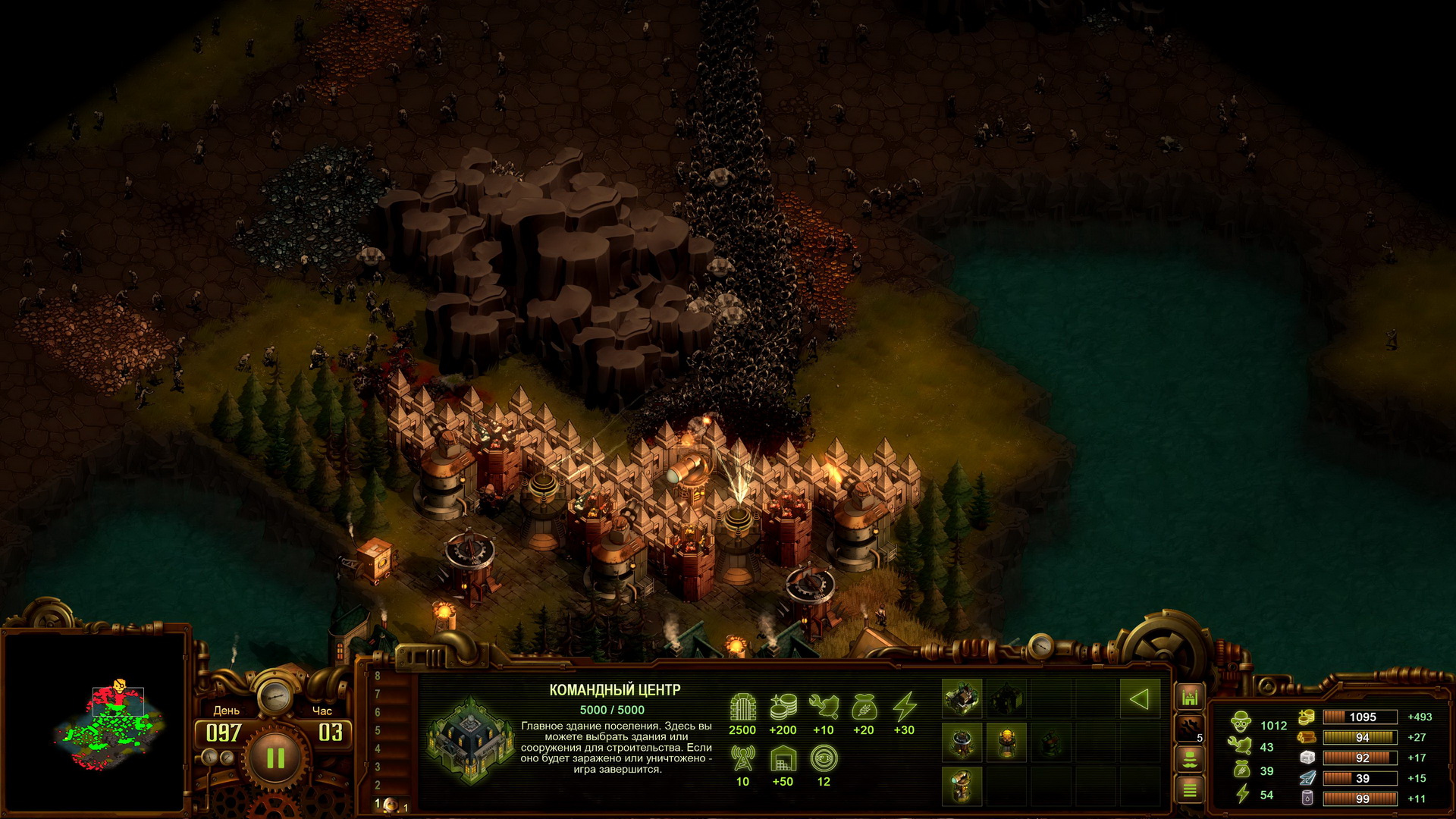 Итогом очередной неудачи стал вывод, что при максимальной численности зомби игра They Are Billions, мягко говоря, не сбалансирована. И переиграв первую миссию со средней численностью мертвецов, я добился успеха. Это доказало, что путь, которым развивался город, оказался правильным.