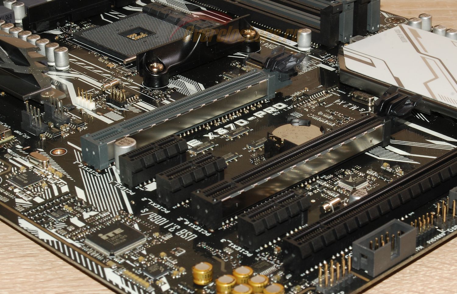 Инженеры ASUS реализовали в ASUS Prime X370-Pro исходили из этих нюансов: на плате распаяно три полноразмерных PEG, три PCIe x1 и одно посадочное место M.2.