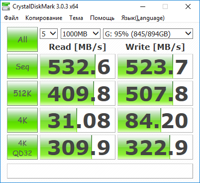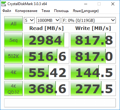Тестирование SATA 6 Гбит/с – Toshiba OCZ Trion 150 960 Гбайт. Тестирование M.2 PCIe – Samsung SM961 128 Гбайт. Тестирование USB – Toshiba OCZ Trion 150 960 Гбайт через адаптер SATA>USB JMicron JMS578.