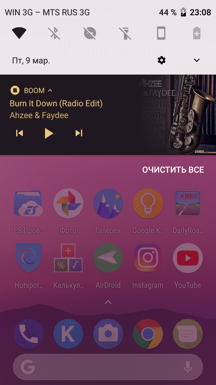 Неотъемлемой частью мобильного приложения Boom являются шикарные уведомления в статус-баре и виджет для экрана блокировки. Обложка альбома в фоне создает превосходную атмосферу.