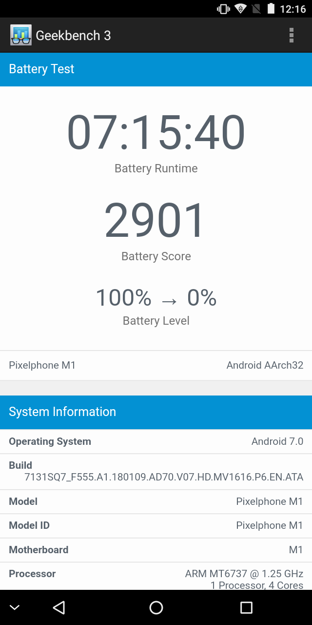 Для начала посмотрим, какую оценку дадут Pixelphone M1 синтетические тесты автономности.