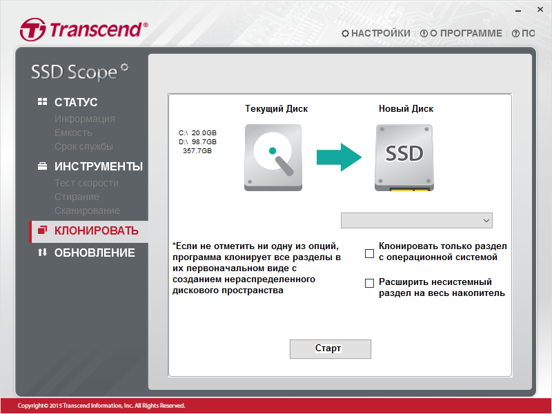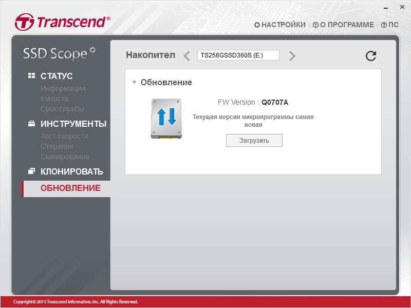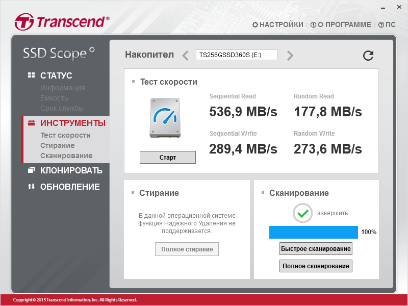 На сайте Transcend можно загрузить фирменный программный пакет Transcend SSD Scope, предназначенный для обслуживания накопителей компании: