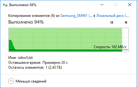Встроенный в Windows диалог копирования файлов (процесс копирования крупных файлов):