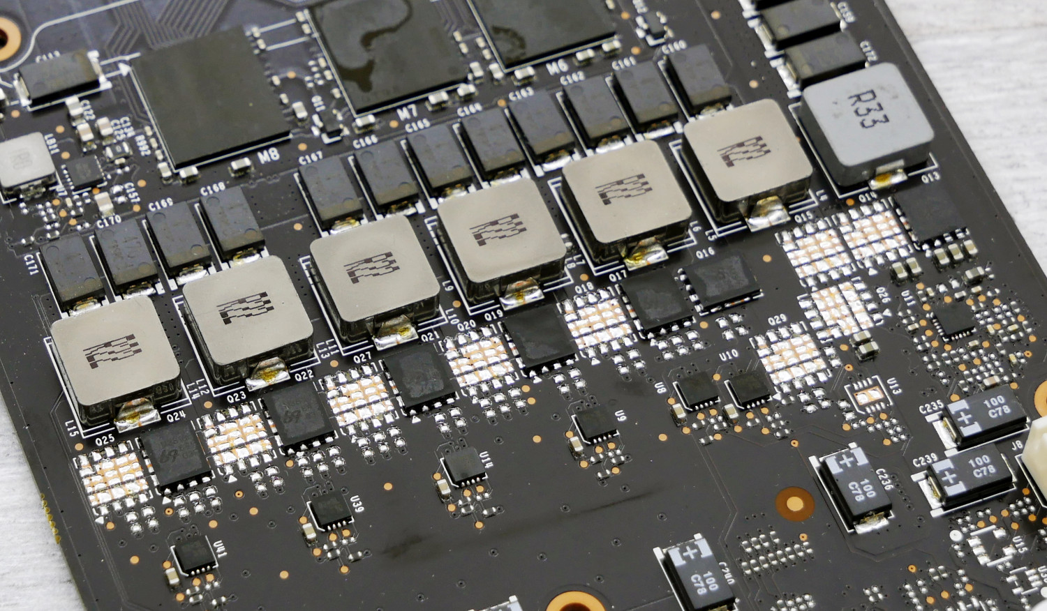 Общая формула подсистемы питания насчитывает восемь фаз: шесть фаз отведены на графический процессор, одна – на видеопамять, одна – на PLL.