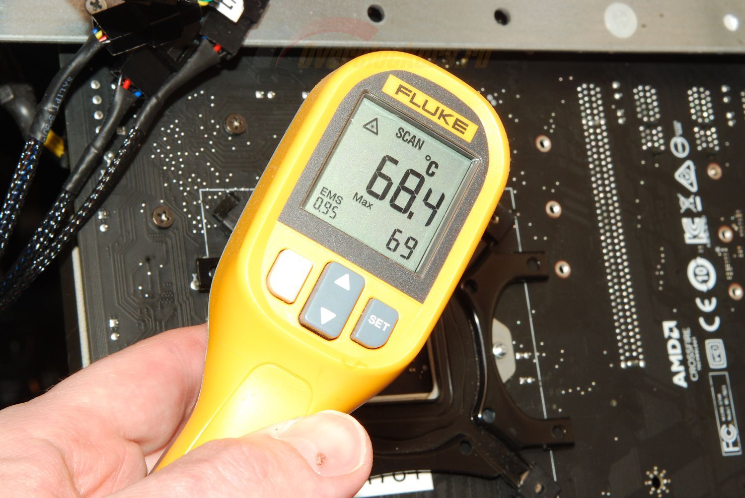 После часа непрерывного тестирования посредством Linx с включенными инструкциями AVX цепи питания CPU достигли температур 69-71°C. Учитывая условия теста, результат отличный.