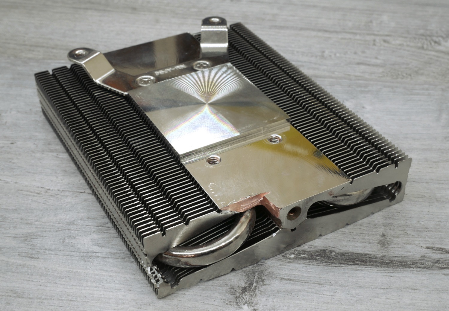 Не совсем хирургический срез, но главное, что тепловая трубка не задета. Она чуть погнута плоскогубцами, да и только.