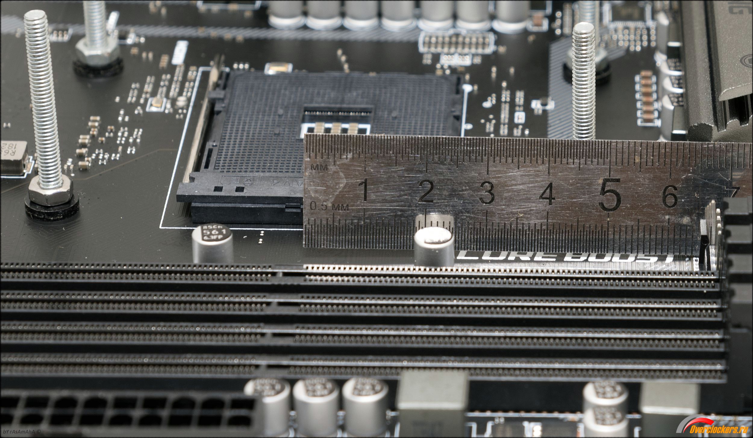 Между центром процессорного разъема и крайним слотом оперативной памяти доступно около 5.5 см.
