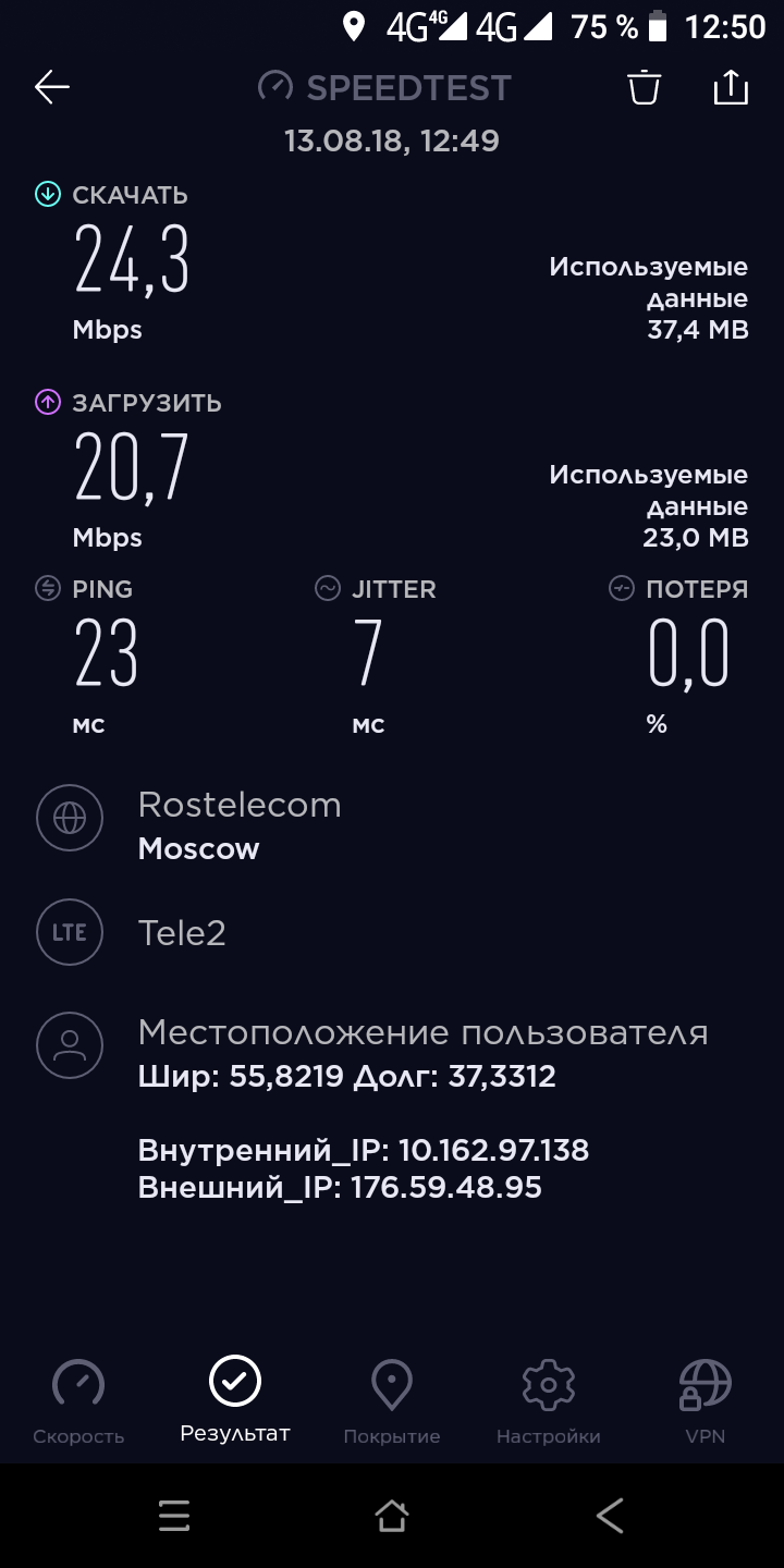 В условиях Москвы и ближайшего Подмосковья аппарат показал стабильный уровень сигнала без каких-либо провалов или помех.