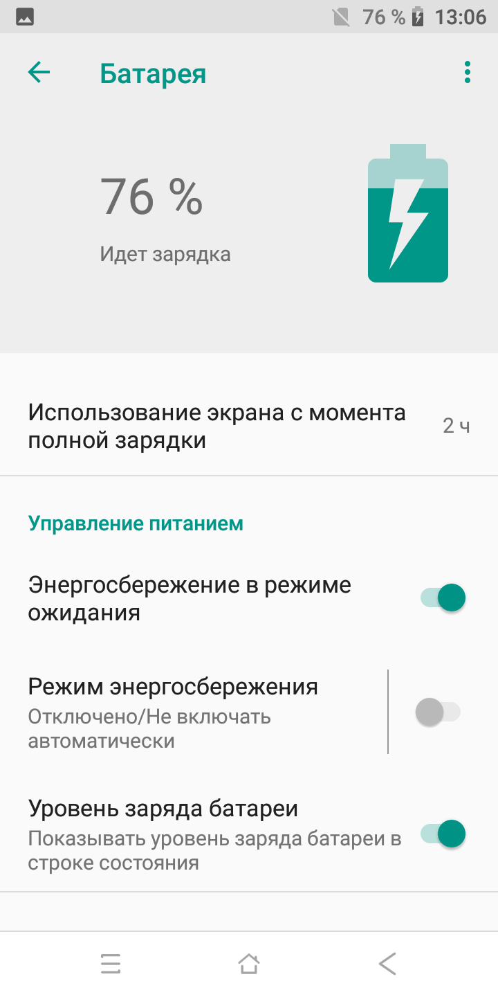 Продлить время работы без подзарядки призваны режимы энергосбережения. По умолчанию активирован профиль энергосбережения в режиме ожидания, останавливающий фоновые процессы и корректирующий работу беспроводных модулей.