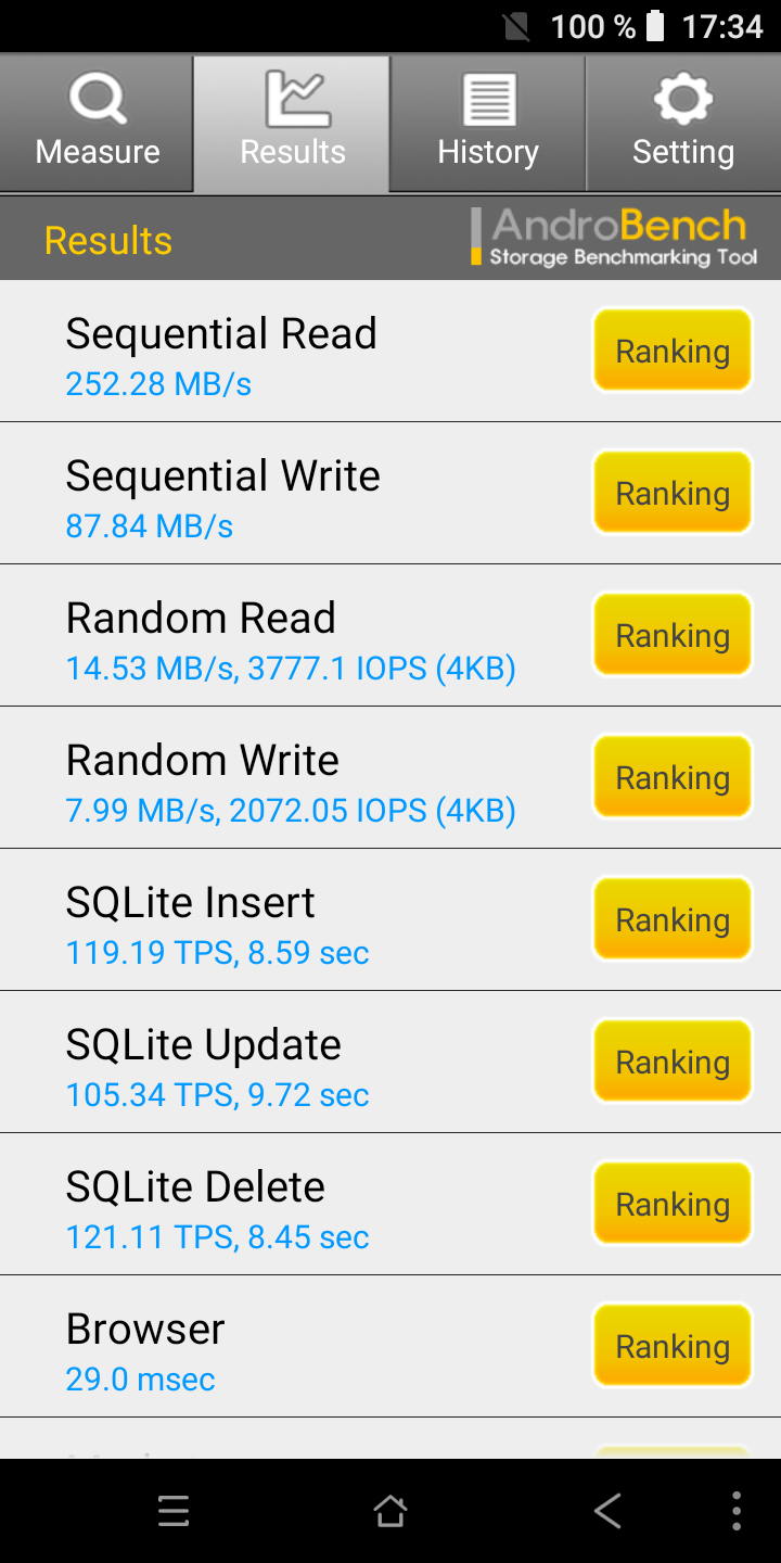 Скорость работы файловой системы тестировалась с помощью приложения AndroBench.