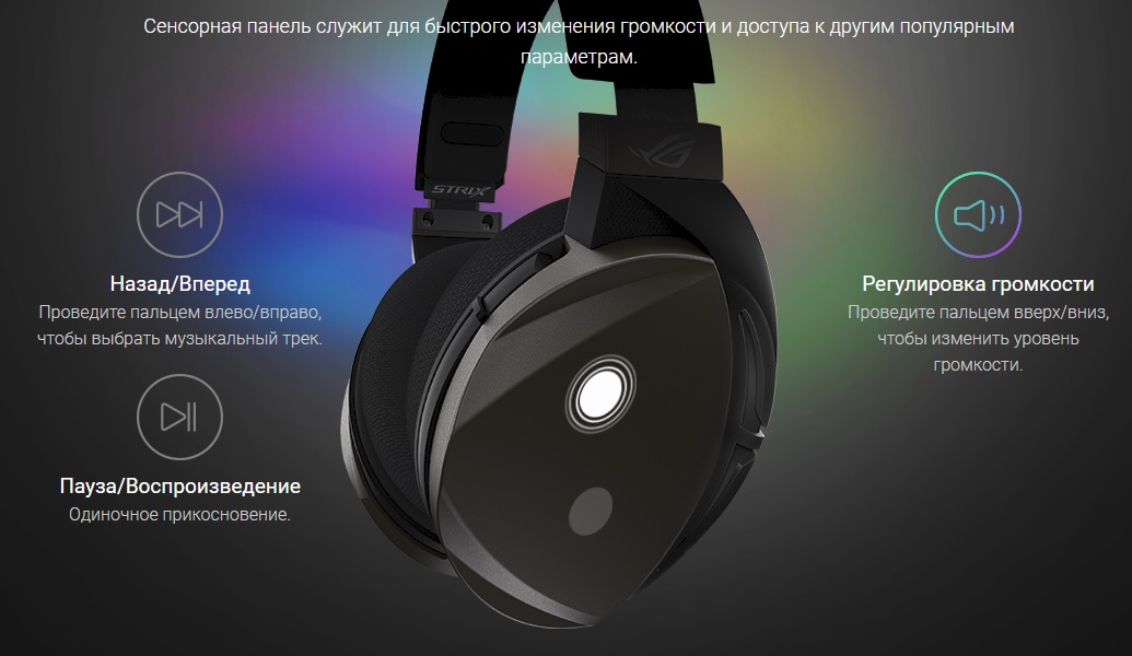 Можно счесть, что на этом все? Как бы не так! Внимательные читатели уже могли заметить, что новинка лишена регулятора громкости или другого управления. Дело в том, что левая чаша ASUS ROG Strix Fusion Wireless получила сенсорное управление.