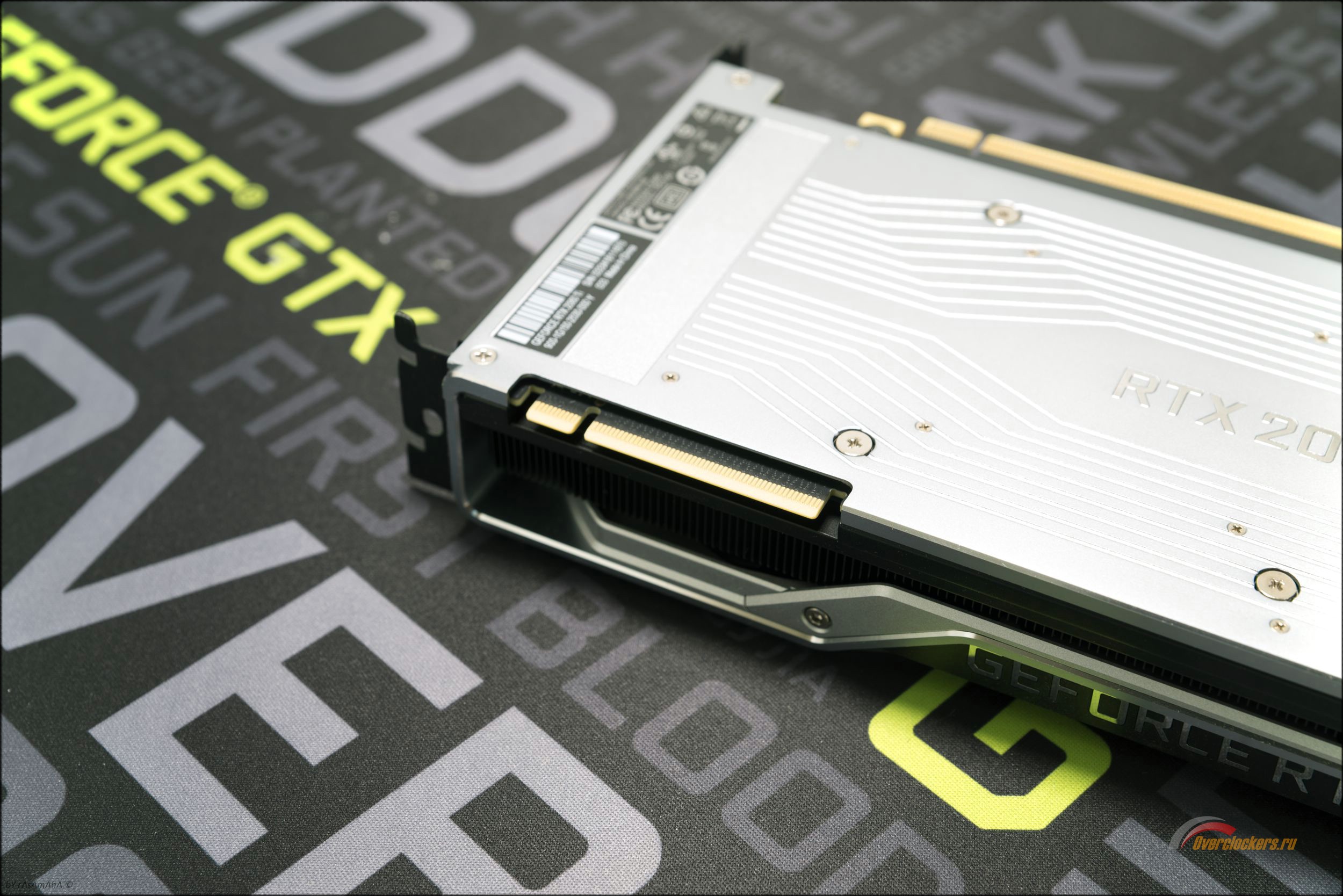 К сожалению, видеокарта не разбиралась вследствие дальнейшей передачи в Nvidia, дабы не портить внешний вид и состав термопасты. Согласно заверению специалистов компании, в текущей версии печатной платы используется 13-фазовая iMON DrMOS система питания для графического процессора и три фазы питания для памяти стандарта GDDR6.