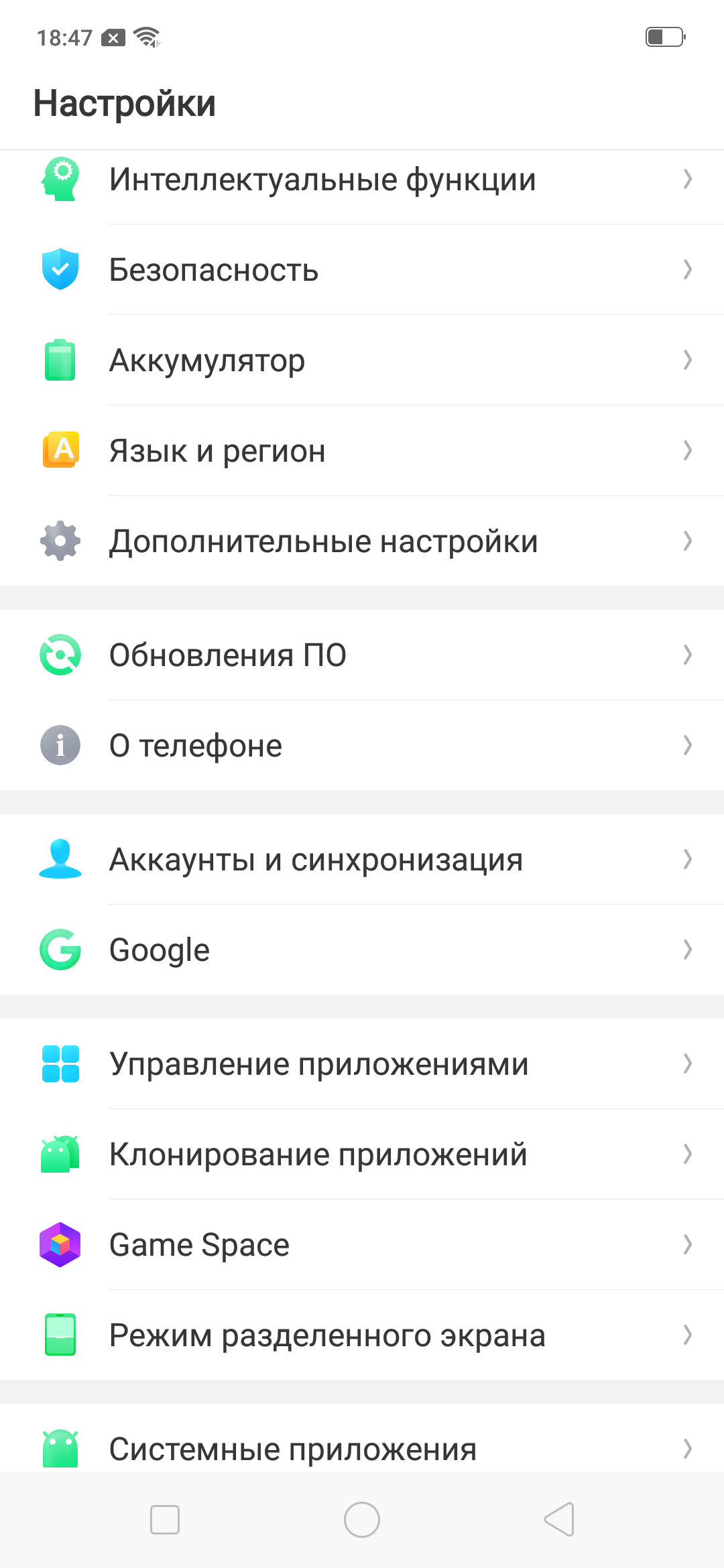 Мне понравилось, что штатными средствами можно изменить сетку главного экрана (отдельного меню приложений ColorOS не содержит), а также перенастроить навигационные кнопки (правда, последний параметр нашелся в «интеллектуальных функциях» – вот вам сразу пример не лучшей группировки пунктов).