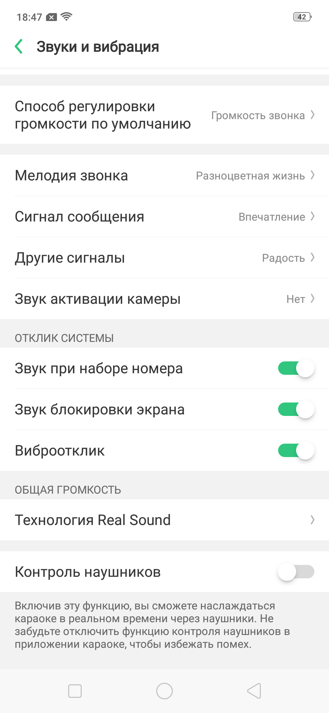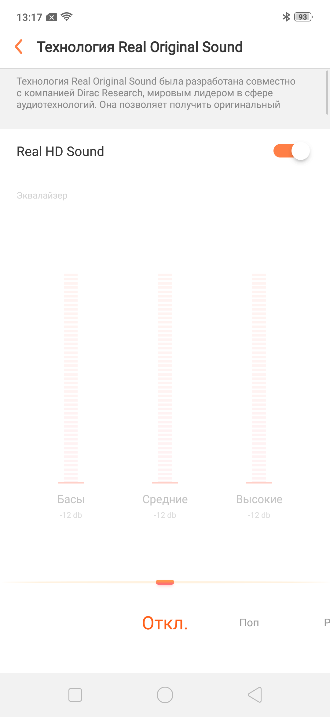Поначалу при попытке подключить смартфон к звуковой карте ASUS Xonar U7 (соотношение сигнал/шум на запись 110 дБ) и протестировать в Rightmark Audio Analyzer у меня получались отвратительные результаты. Виновата оказалась «Технология Real Sound», по умолчанию активированная в аудионастройках. Это эквалайзер Dirac, который, даже будучи установленным на пресет «Откл.», изменяет выходной сигнал.