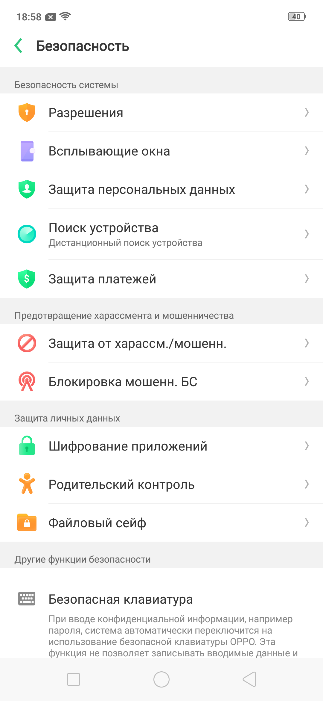 Из интересных моментов остановлюсь, пожалуй, лишь на фирменной клавиатуре. Производитель добавил настройку, позволяющую выбрать отдельное приложение для ввода паролей и прочей чувствительной информации. И предлагает использовать собственную «безопасную клавиатуру OPPO».