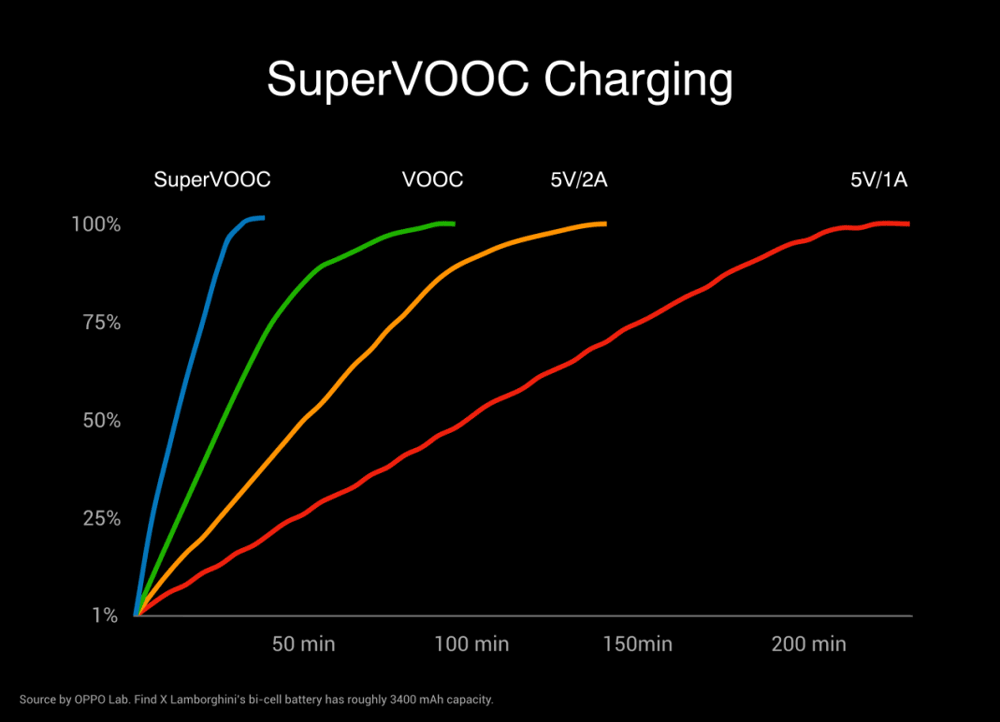 И вот, наконец, что-то интересное. В OPPO Find X производитель установил еще один рекорд – по скорости быстрой зарядки. Новая технология получила имя Super VOOC. «В-в-вух, и зарядился»?
