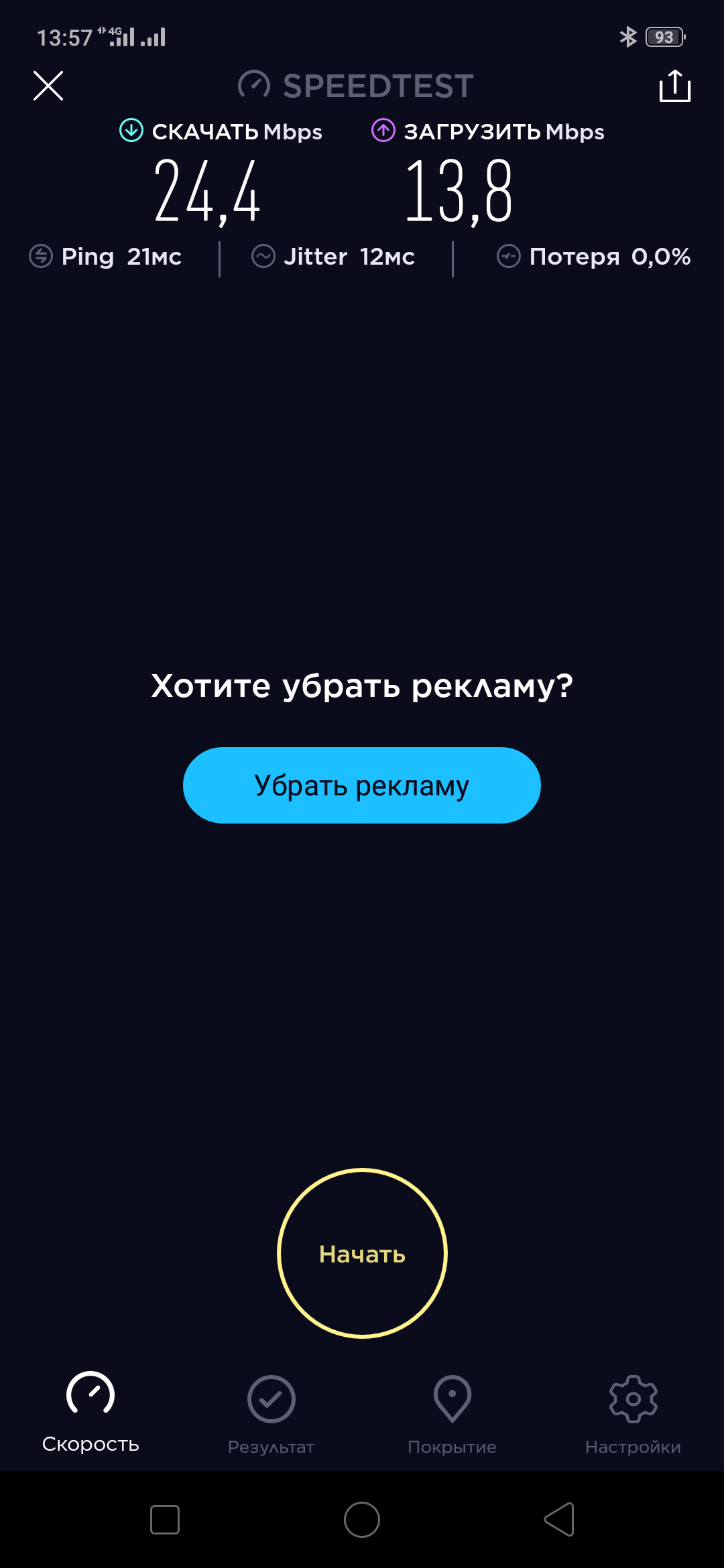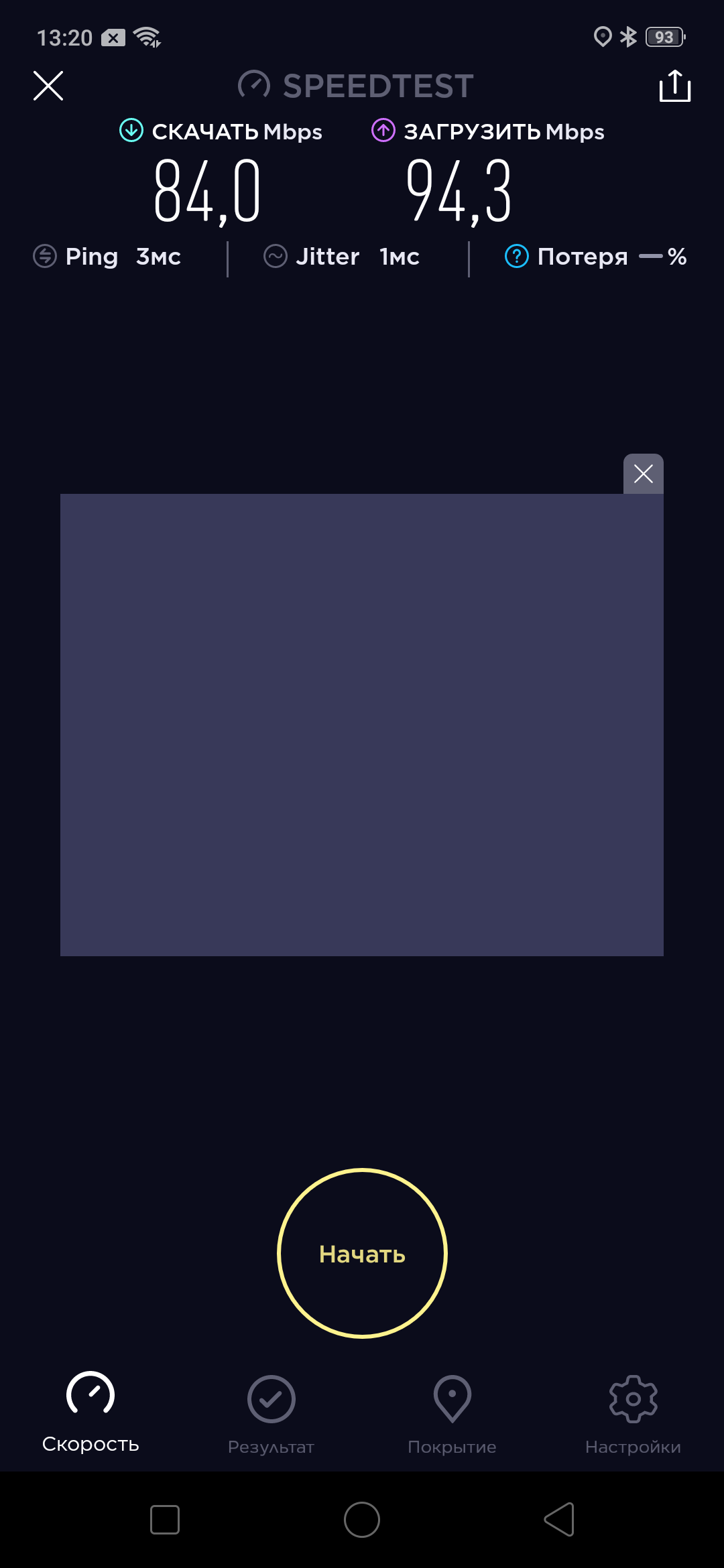 Скорость Wi-Fi, причем с тарифом 70 Мбит/с – по всей видимости, провайдер любит хорошие результаты в SpeedTest: